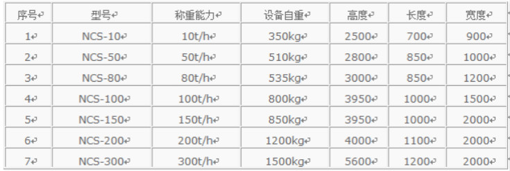 中間計量秤SW-NCS技術參數: