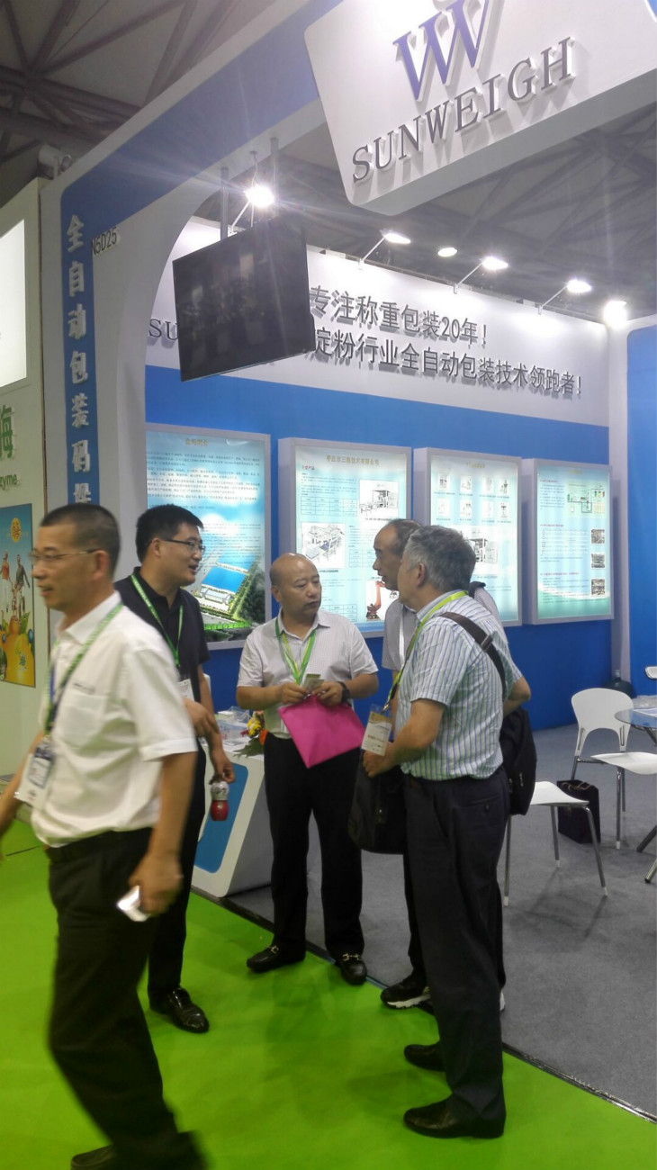 棗莊市三維技術(shù)有限公司自1996年開始研發(fā)生產(chǎn)包裝秤設(shè)備,20年的研發(fā)生產(chǎn)積累了豐富的經(jīng)驗(yàn),同時(shí)也為公司立足于包裝秤行業(yè)奠定了基礎(chǔ)。本屆世界淀粉產(chǎn)業(yè)大會(huì)公司不僅帶來了淀粉定量包裝秤、高位碼垛機(jī)、碼垛機(jī)器人、淀粉自動(dòng)上袋機(jī)等產(chǎn)品,更是大力展示了公司的明星產(chǎn)品淀粉全自動(dòng)包裝秤,展會(huì)一開始就吸引了大量的參展客戶駐足。中間有老客戶,更多的是新客戶的咨詢絡(luò)繹不絕,更有外國(guó)客商商談合作細(xì)節(jié)。