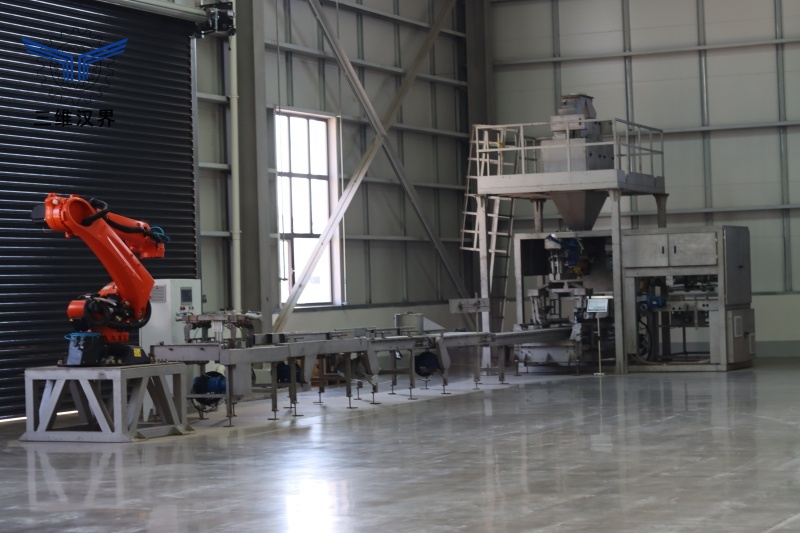 全自動小袋包裝機和機械手裝車機聯合作業的優