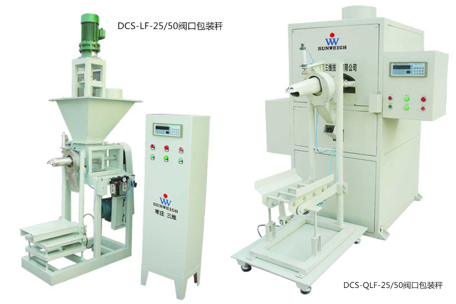 DCS-LF-25/50閥口包裝秤和DCS-QLF-25/50閥口包裝秤是棗莊三維生產(chǎn)的主打產(chǎn)品。閥口式定量包裝秤是集自動(dòng)計(jì)量、灌裝、封包于一體,不需縫口機(jī)縫包的包裝機(jī);并采用閥口式包裝工藝,減少了粉塵外溢;高速處理控制儀表及數(shù)字變頻技術(shù),確保了極高的計(jì)量準(zhǔn)確度。