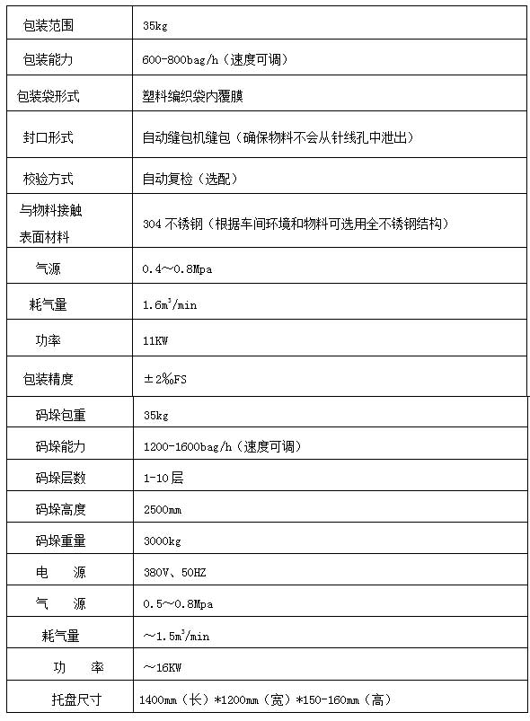 復合肥全自動包裝高位碼垛生產線技術參數