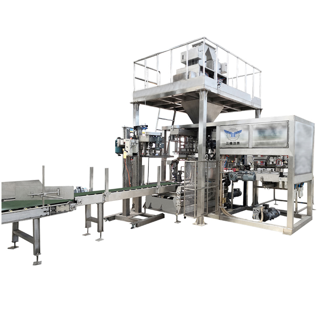 全自動包裝秤主要由自動上袋機、自動稱量系統、自動折邊機、自動縫包機、成品輸出碼垛等幾個部分組成。設備主要完成無水氯化鈣物料的自動稱量、自動上袋、自動包裝、自動折邊封口、自動輸出碼垛等功能。節約人力、物力及財力的投入。為企業降低生產成本,提高生產效率。同時該設備應用范圍更是廣泛,無論是粉狀物料、顆粒物料還是混合物料都可以實現全自動包裝。